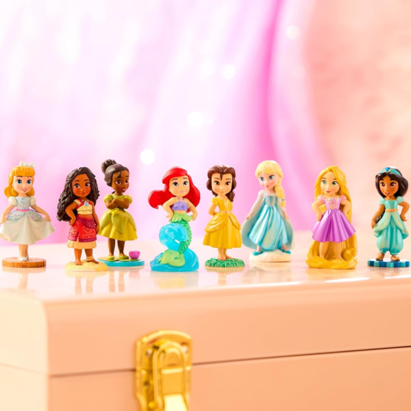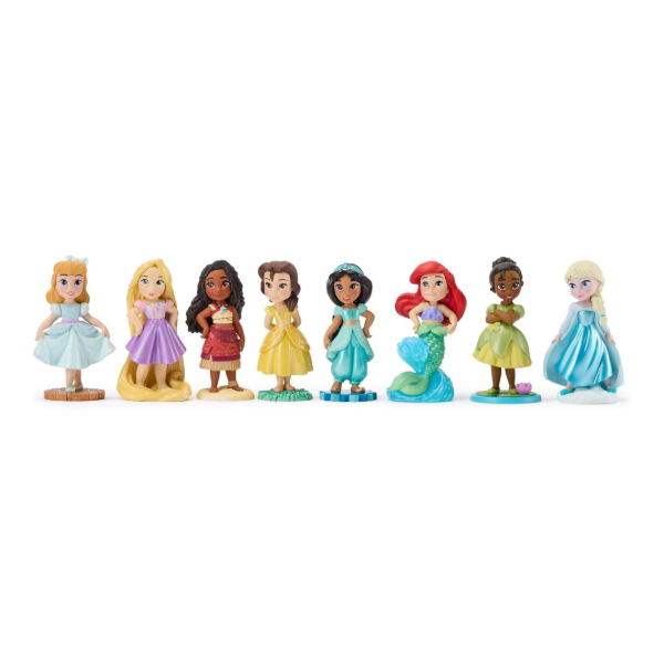 Sueña con historias de la infancia sobre tus princesas Disney favoritas y sus amigos con nuestro set de figuritas totalmente esculpidas que incluye 8 princesas de cuento.