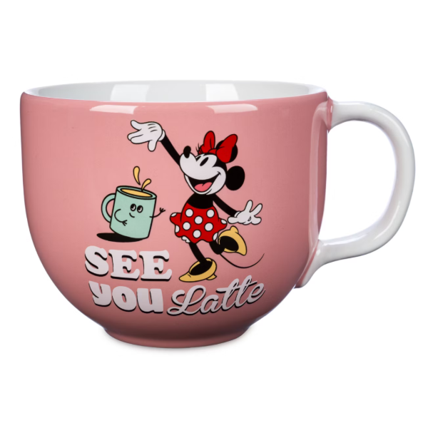 Te veo después del café! Minnie Mouse siempre empieza su mañana con buen pie cuando se toma su bebida favorita en esta gran taza de tipo capuchino, que te pondrá en marcha después de una noche reparadora.