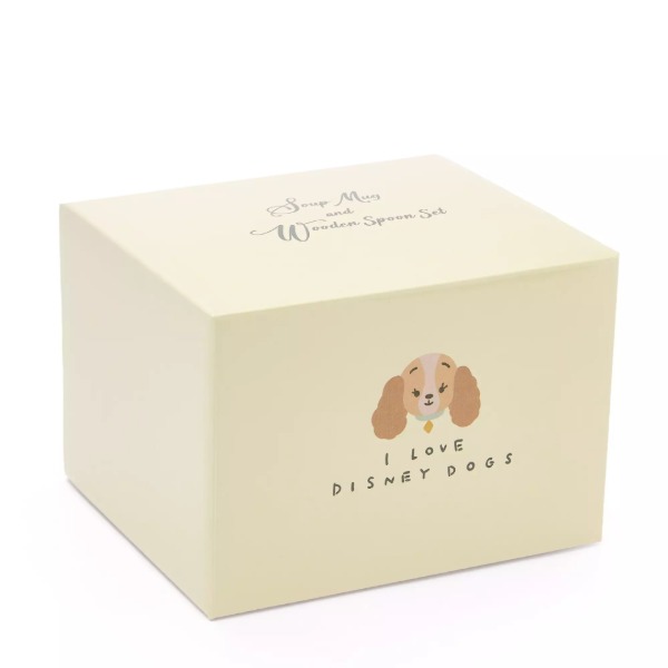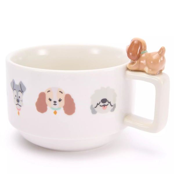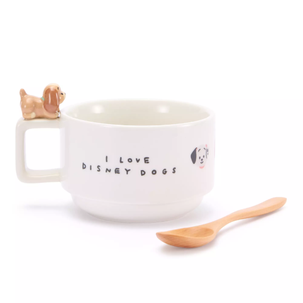 Adorables perros animados de Disney adornan esta taza de sopa de cerámica con asa en forma de cachorrita.