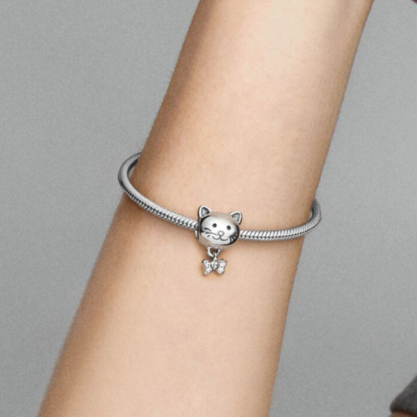 Haz brillar el amor que sientes por tu mascota con el Charm Mascota Gato y Lazo.