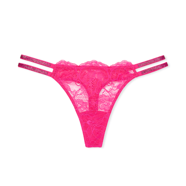 Colaess fucsia tiro bajo de encaje con doble tira y detalle de brillos fucsias en sus tiras