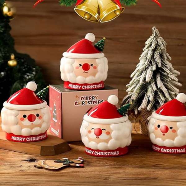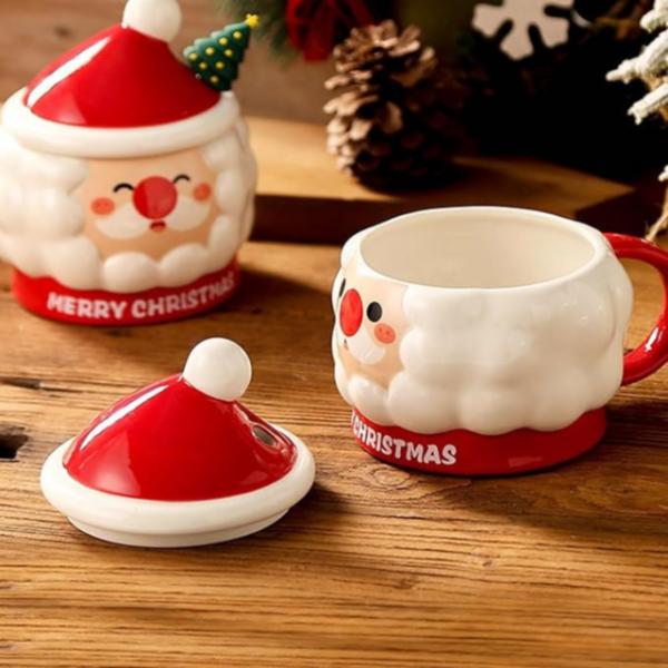 Inclye una tapa de cerámica con un diseño de gorrito de papa noel! Su cucharita tiene un tierno aplique de arbolito de navidad!