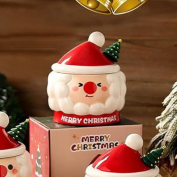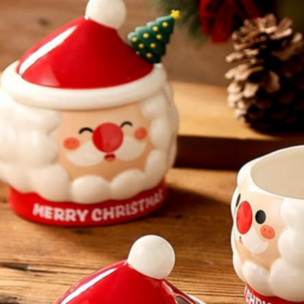 Inclye una tapa de cerámica con un diseño de gorrito de papa noel! Su cucharita tiene un tierno aplique de arbolito de navidad!