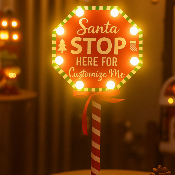 En la parte delantera lleva la inscripción de "Santa stop here fot customize me", además de 8 bolitas de luz led!
